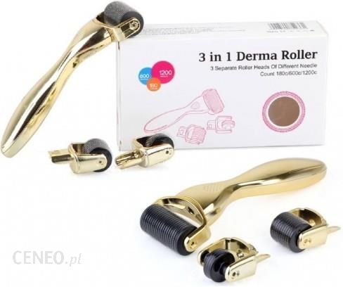 3X Derma Roller Ciało Twarz Oczy Dermaroller 3W1 Stal Złoty